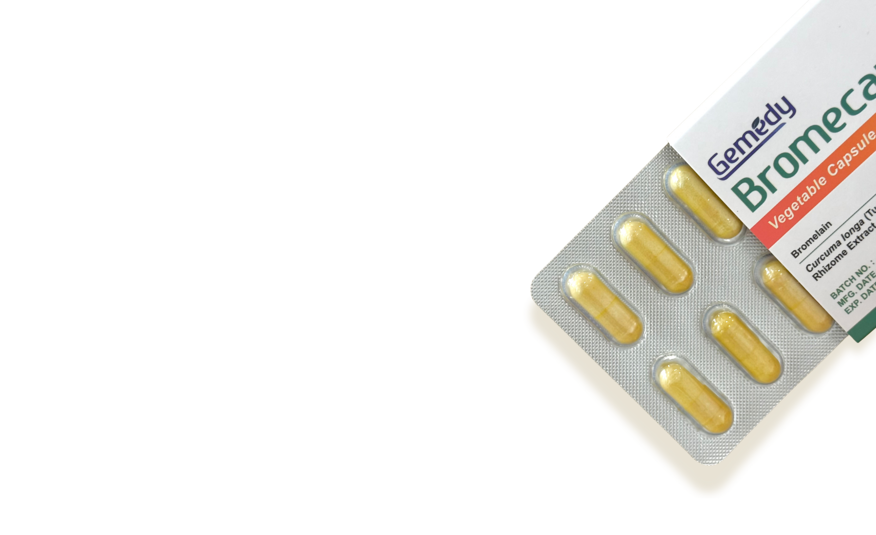 Gemedy Bromecap targets whole-body inflammation. Think swollen knees/ ankles, leg puffiness after long days, arthritic stiffness, sprains and overuse muscle soreness.
